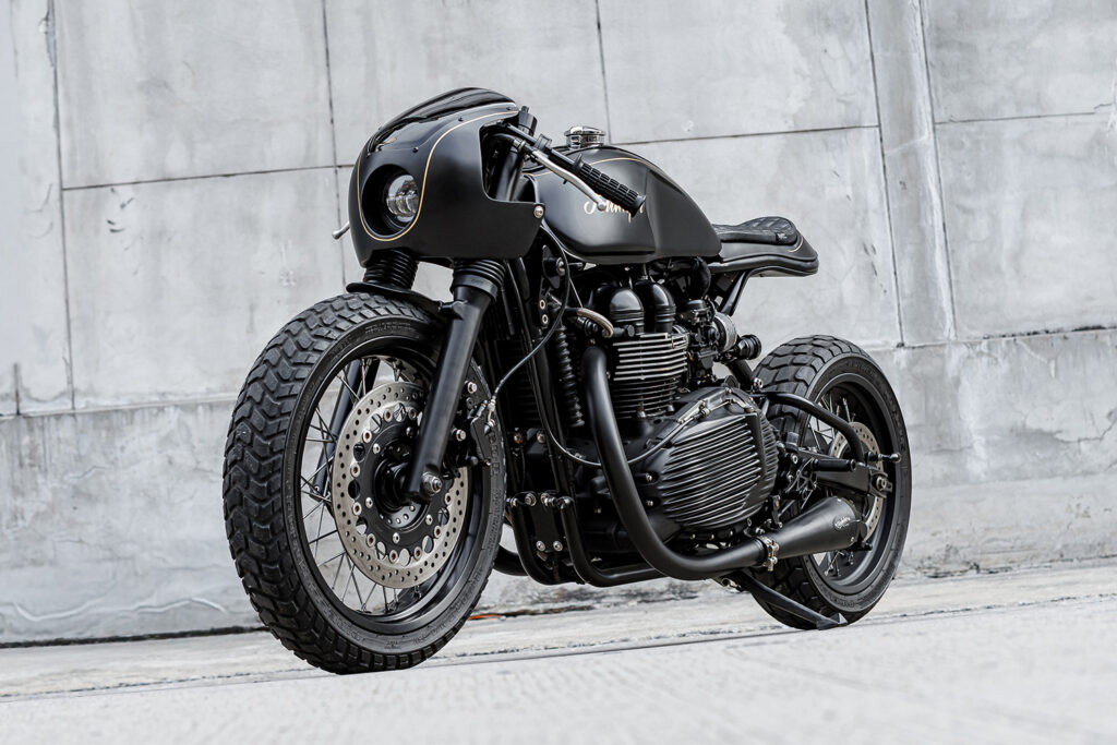 Chrome is replaced with anodized black finishes, ensuring the visual language remains cohesive and consistent from nose to tail. Every detail emphasizes discipline and functionality, revealing the bike’s purpose through its silhouette.
