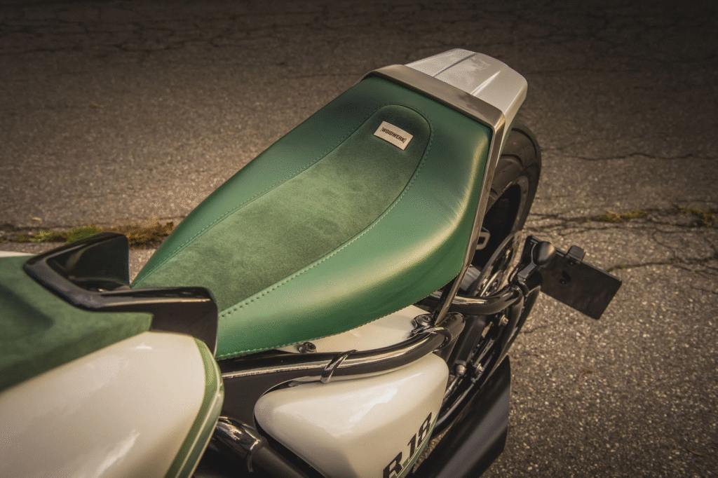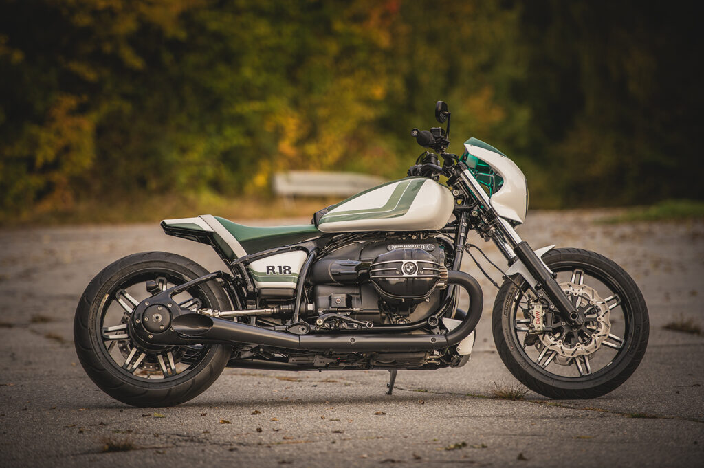 Ralf jokes that in his region, the weather consists of “three-quarters winter and one-quarter cold.” The design reflects this: the white represents the snow, while the green symbolizes the brief burst of spring. It’s a brilliant touch that gives this custom BMW R18 and its sibling a narrative beyond just looks.
